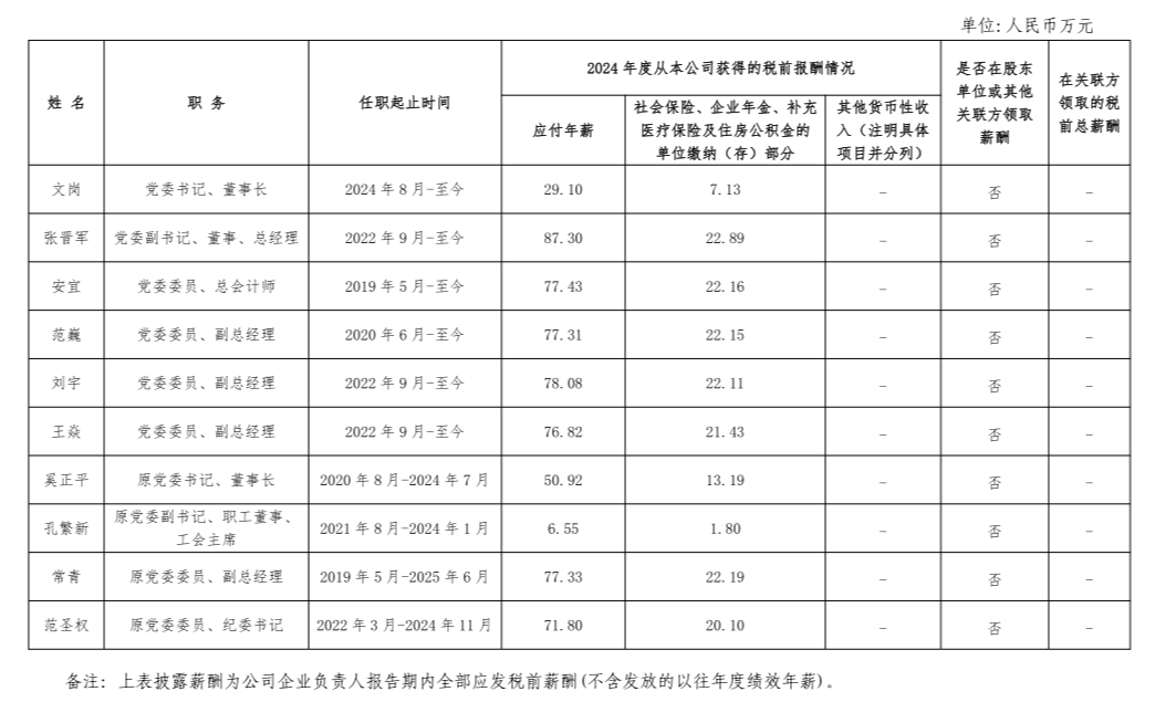 中国有色矿业集团有限公司企业负责人2024年度薪酬情况